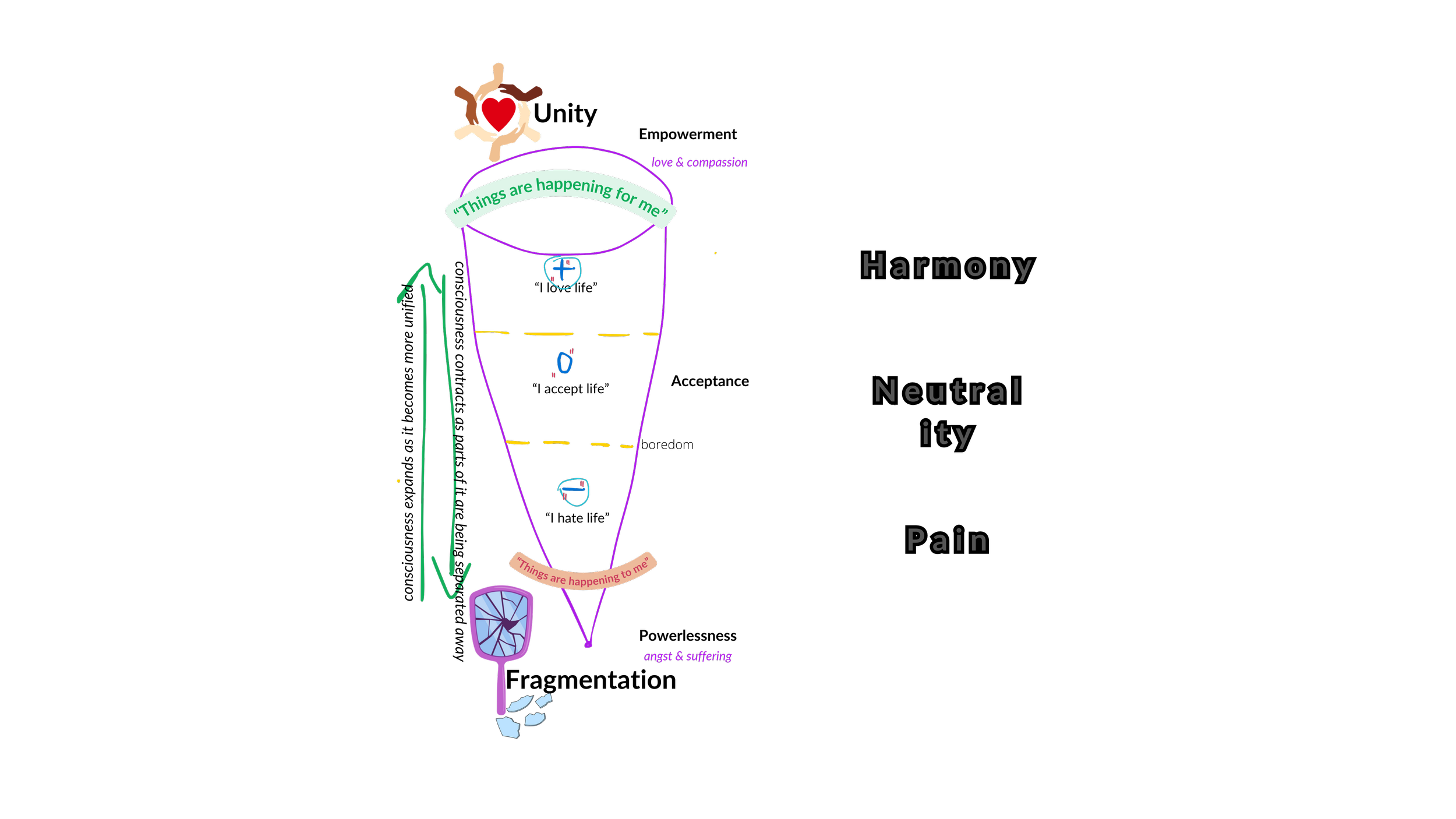 It’s the movement from “-” to “+” through the zero ground (=> acceptance) in the energetical spectrum or shall I say the emotional continuum.